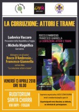 LA PRESENTAZIONE. Venerdì 13 aprile 2018 dalle ore 18.00, presso l’auditorium Santa Chiara, si terrà un incontro aperto alla cittadinanza per la presentazione del libro “La corruzione: attori e trame’” (Mimesis, Milano-Udine 2018) con gli autori, Francesco Giannella, procuratore aggiunto del Tribunale di Bari, e Rocco D’Ambrosio, ordinario di Filosofia Politica presso la Facoltà di Scienze Sociali della Pontificia Università Gregoriana.