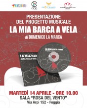 SENSIBILIZZARE CON LA MUSICA. Così Domenico la Marca, attuale sindaco di Manfredonia, da sempre attivista e operatore del Terzo Settore, sociologo nonché musicista che, proprio martedì 14 aprile, ha presentato in Fondazione dei Monti Uniti di Foggia il suo nuovo progetto musicale dal titolo "La mia barca a vela". Un lavoro composito di sensibilizzazione sui temi sociali, sulla cultura della legalità e della solidarietà, firmato insieme con la Cooperativa Arcobaleno con Domenico (di cui la Marca è stato presidente) grazie anche al contributo della Fondazione. L'iniziativa, pertanto, nasce dall’esperienza del centro Interculturale “Baobab-sotto la stessa ombra” e dal lavoro svolto in questi anni con la Coop. Arcobaleno.