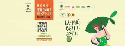 GLI ORGANIZZATORI. L’evento, promosso dal Comune di Cerignola, è realizzato in collaborazione con l’associazione Di terra di mare, Red Hot - impresa creativa, Adventa, ItaliaLab, Cerignola Produce - agenzia comunale per lo Sviluppo del Territorio e L’Agorà, con la partecipazione speciale del Consorzio di tutela oliva da mensa Dop La Bella della Daunia - Varietà Bella di Cerignola, con il patrocinio di Regione Puglia e Symbola - Fondazione per le qualità italiane. Info su www.facebook.com/lapiubellaseitucerignola