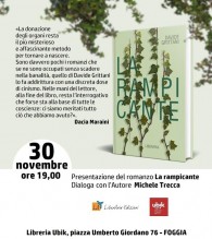 Ne hanno parlato in tanti: Dacia Maraini, Furio Colombo, Andrea Purgatori, solo per citare i più importanti. E ne stanno parlando ancora, con toni via via sempre più positivi: il nuovo romanzo dell’autore e giornalista foggiano Davide Grittani, “La rampicante”, sua terza pubblicazione, sembra essere una delle rivelazioni di questa nuova stagione narrativa. Venerdì 30 novembre, alle ore 19, nello spazio della libreria Ubik di Foggia, lo scrittore incontra per la prima volta il pubblico della sua città, in occasione di questa nuova opera.