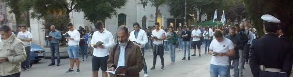 in silenzio, in fila, leggendo un libro, per una veglia di un’ora. Le “Sentinelle in piedi” si sono date appuntamento nell’area pedonale di Foggia: una cinquantina di persone riunite per contestare l'aggravante del reato di omofobia inserita nel Ddl promosso dal sottosegretario Ivan Scalfarotto, accusato di essere “fortemente liberticida”. In realtà, anche scorrendo il “manifesto” delle Sentinelle in Piedi, si capisce come la manifestazione sia anche un pretesto per opporsi a qualsiasi forma di famiglia che non riguardi, come si legge, “l'unione tra un uomo e una donna” (LEGGI: Genitori gay e Sentinelle in Piedi... E in mezzo, la città di Foggia). A fare da contorno all’iniziativa, un gruppetto di studenti che ha realizzato una contromanifestazione, consegnando volantini e dialogando con le persone, incentrando il proprio messaggio sullo stop all’omofobia.
