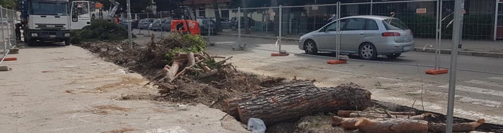 Qualcosa si 'muove', dopo giorni di fermo, nel cantiere di via Napoli a 100 giorni dall'inaugurazione dei lavori di rifacimento del tratto di strada compreso tra Via Martiri di Via Fani e Viale Ofanto. Sono stati, infatti, abbattuti due pini marini che insistevano sui primi 60 metri di strada, all'interno del marciapiede centrale che divide le due carreggiate.