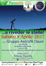 IL GAD."L'inquinamento luminoso, la mancanza di tempo, le occupazioni quotidiane ci hanno fatto dimenticare la bellezza del cielo stellato e delle sue meraviglie, per questo sabato parleremo delle stelle e delle loro affascinanti storie mitologiche, per poi osservare direttamente con i telescopi del G.A.D. la Luna, i pianeti e le altre meraviglie della Volta Celeste. Nell'occasione, per favorire la visione degli astri, ci sarà lo spegnimento temporaneo dell'illuminazione circostante, con l'autorizzazione del Comune di Foggia. Non mancate quindi l'appuntamento per tornare.. a riveder le stelle”, spiega Claudio Vantaggiato del Gruppo Astrofili Dauni.
