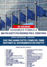 Nella serata di oggi, 30 giugno, dalle ore 19 è in programma un'assemblea pubblica a Borgo Mezzanone promossa dai firmatari dell’appello che chiede il pieno utilizzo delle risorse del PNRR per il superamento degli insediamenti informali di lavoratori stranieri, con 54 milioni dei 200 complessivi stanziati destinati al “ghetto” della borgata che dista 10 chilometri da Foggia ma ricade nel comune di Manfredonia.