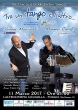 Sabato 11 marzo presso L’Altro Cinema Cicolella di Foggia andrà in scena lo spettacolo “Tra un tango e l'altro” con il fisarmonicista Mimmo Cavallo e il suo ensemble tango jazz.