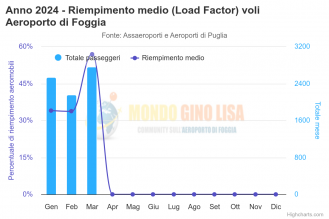 L'associazione Mondi Gino Lisa ha diffuso e commentati i dati di traffico registrati dagli aeroporti italiani nel mese di marzo 2024 e registrati da Assaeroporti riguardanti lo scalo foggiano.