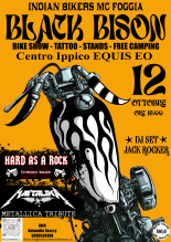 Uno degli eventi Biker più grandi del Sud Italia, il "Black Bison" edizione 2024, organizzato dagli Indian Bikers MC Foggia, anche quest' anno tornerà ad animare il mondo Biker e non solo. In questa edizione il raduno si svolgerà il 12 ottobre presso il centro ippico "Equis Eo" di Foggia (Strada poderale San Lorenzo).
