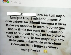 IL POST. Al vaglio degli inquirenti anche un post fatto dall'indagato nei minuti successivi al brutale accoltellamento, prima di recarsi dai Carabinieri. Si tratta di un messaggio inviato a suo figlio tramite social nel quale, con frasi sconnesse, scrive di “essere pericoloso”, affidandogli le proprietà in quanto “latitante e ricercato dalla legge”, dichiarandosi inoltre pronto "a mangiare erba". "Sei tu il capofamiglia ora" scrive ancora l'uomo. "Ti consegno le terre e il borsone da contadino, difendi le tue proprietà". Il movente dell'assassinio risiederebbe in banali liti tra la vittima e la moglie dell'indagato, colleghe di lavoro.