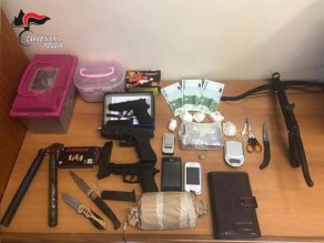 L’INDAGINE. L’Operazione “Retis”, nella Rete, nasce a seguito dell’arresto effettuato il 30 gennaio 2019, nella flagranza dei reatidi detenzione a fini di spaccio di sostanze stupefacenti di cocaina e hashish e di illecita detenzione di armi clandestine e di esplosivi, a carico di Silvestri Pio Giuseppe, 20enne manfredoniano arrestato dagli investigatori della Compagnia di Manfredonia, poiché trovato in possesso, all’interno della sua abitazione,di quasi mezzo chilo di cocaina dall’elevatissimo principio attivo, di tre pistole a salve calibro 9 modificate e rese funzionanti per esplodere munizionamento comune da sparo, quindi da considerarsi armi clandestine, di un ordigno esplosivo (c.d. bombacarta) con miccia innescata, polvere pirica ealtra sostanza idonea al confezionamento di ordigni esplosivi, più colpi di vario calibro caricati artigianalmente, numerosi pugnali e coltelli, una balestra, un nunchaku da arti marziali, nonché bilancini di precisione e materiale atto al confezionamento dello stupefacente, oltre a denaro contante, verosimile provento dell’attività di spaccio.