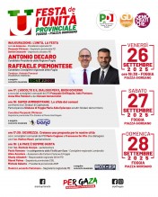 Dal 26 al 28 settembre, Foggia ospiterà la Festa provinciale de l’Unità, organizzata dal Partito Democratico di Capitanata e dal Partito Democratico di Foggia: tre giorni di dibattiti, confronto politico, ascolto dei cittadini, musica e momenti di comunità.