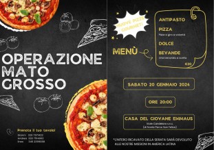 Nuove pizze gourmet nel menù solidale di Operazione Mato Grosso. Torna con una novità l'ormai tradizionale appuntamento dell'organizzazione, per una raccolta fondi 'gastronomica'. L'intero ricavato delle serata sarà infatti devoluto alle missioni di Operazione Mato Grosso in America Latina.