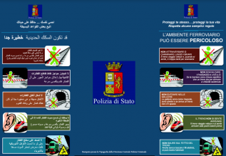 La Polizia Ferroviaria, che quest’anno celebra il 110° anniversario dalla fondazione, lancia la campagna “Keep safe from railway risk”, realizzata per sensibilizzare i migranti rispetto ai pericoli connessi con un utilizzo improprio del mezzo ferroviario. Il passaggio dei migranti - spiegano dalla Polizia - riguarda infatti anche le vie di comunicazione ferrate e finisce per tradursi talvolta in comportamenti estremamente pericolosi quali camminare lungo i binari, arrivando fino ad addentrarsi nelle gallerie, ovvero viaggiare sui tetti dei treni, con il rischio elevatissimo di rimanere folgorati.