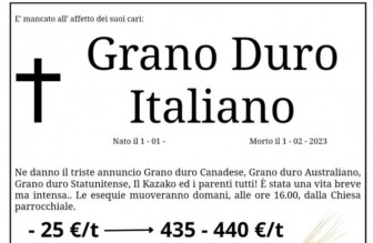 “E' mancato all'affetto dei suoi cari il Grano Duro Italiano”, si apre con un manifesto funebre la pagina facebook della CIA (Confederazione Agricoltori Italiani). A dare l'annuncio che segna anche la morte della filiera produttiva, sempre secondo il manifesto, sono i grani concorrenti provenienti da Stati Uniti, Australia e Kazakistan.