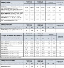I PREZZI. Come si legge nelle tabelle della Borsa Merci di Foggia pubblicate dalla CIA nella riunione di oggi il prezzo del grano duro è diminuito di 25 euro a tonnellata rispetto a quella del 25 gennaio. Il grano duro Biologico passa da un minimo di 475€ a 450€, in caso anche quello Fino (440€), quello Buono Mercantile (428€) e quello Mercantile (418€).