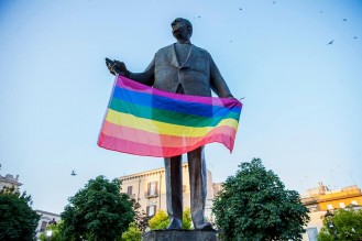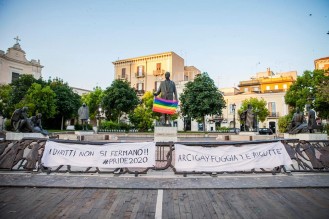 I diritti non si fermano. E' questo il messaggio lanciato dall'Arcigay - Le Bigotte di Foggia, che in occasione del Global Pride 2020, non potendo realizzare alcun tipo di evento a causa delle restrizioni dovute all’emergenza Covid-19, ha esposto una bandiera arcobaleno in uno dei luoghi simbolo della città. In piazza Umberto Giordano, infatti, è stato issato il vessillo arcobaleno con due striscioni.