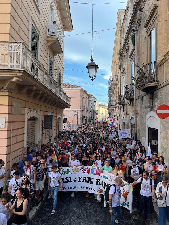 LA LIBERTA’ DELLA PARATA. Così Salvatore D’Alessio, attivista di Arcigay Foggia “Le Bigotte”, tra gli organizzatori della manifestazione che ha avuto luogo nel capoluogo daunio sabato 10 giugno, tappa principale del Puglia Pride 2023 (foto di Roberto Moretto e Maurizio Iorio, ndr). Un commento a margine di una sfilata coloratissima e priva di qualsivoglia eccesso, divertente, allegra e, naturalmente, libera. Alla quale – va sottolineato, a umiliazione di qualche commento infelice comparso durante i live sui social network – hanno preso parte intere famiglie, con bambini e minori a seguito, consapevoli di quanto sia importante ed educativo diffondere un messaggio di libertà identitaria prima ancora che sessuale.
