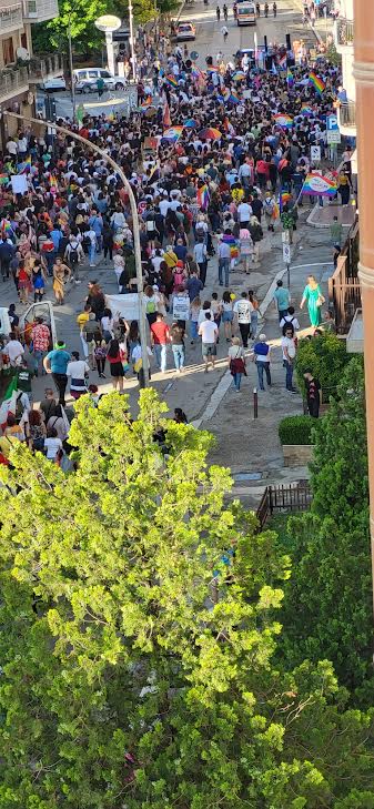 “Ci siamo spaventati quando ha iniziato a piovere, nel pomeriggio, tanto che alcuni gruppi della provincia di Foggia sono rimasti a casa proprio a causa della pioggia battente che è caduta qui in Capitanata. Al di là dei numeri però, conta il fatto di aver dimostrato alla città, a chi ancora non lo conoscesse, cos’è realmente un pride”.