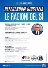 L'APPUNTAMENTO. Sabato 28 febbraio 2026, alle ore 17:30, presso la Sala delle Vetrate “Aronne Del Vecchio” di Palazzo San Domenico (Piazza del Popolo, Manfredonia), Paolo Liguori, noto giornalista e già direttore editoriale di TGCOM24, illustrerà i temi cardine della consultazione referendaria, con particolare focus sulla separazione delle carriere. L’incontro si aprirà con i saluti istituzionali dell'ing. Gianni Rotice, presidente del Comitato Territoriale per il Sì “Noi Moderati Puglia”, di Luigi Morgante, segretario regionale Noi Moderati Puglia, Francesco Borgese, segretario provinciale Noi Moderati Foggia.