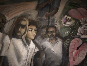 LA RESIDENZA ARTISTICA. Non si tratta di “murales”, ma di pittura murale moderna. Michilini non agisce sulle pareti della chiesa, ma su pannelli amovibili che vi aderiscono.