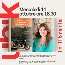 UNA DELLE AUTRICI NOIR PIU’ AMATE. Ce n’è abbastanza per Chicca Lopez, l’investigatrice salentina nata dalla penna di Gabriella Genisi, ormai tra le autrici noir più amate in Italia, creatrice della bella Lolita Lobosco, protagonista anche in TV anche grazie al volto dell’attrice Luisa Ranieri. Mercoledì 11 ottobre, alle ore 18.30, la scrittrice barese presenta “L’angelo di Castelforte” (Rizzoli, 2023) negli spazi della libreria Ubik di Foggia, ultimo tassello della serie che ha per protagonista l’ormai nota carabiniera. A conversare con Gabriella Genisi, amatissima dai lettori foggiani, saranno i membri del gruppo di lettura A qualcuno piace… Giallo.
