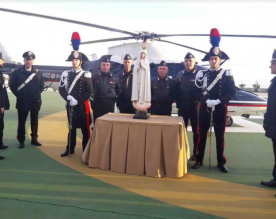 Si rinnova a San Giovanni rotondo un singolare evento di fede. E' tornata oggi, a bordo di un velivolo del 6° Elinucleo dei Carabinieri, per la terza volta la statua originale della Madonna Pellegrina di Fatima, la stessa che Padre Pio venerò nel 1959, ottenendo poche ore dopo la guarigione da una grave infermità. La Sacra effige sarà ospitata dal Santuario Santa Maria delle Grazie di San Giovanni Rotondo fino a lunedi 27 novembre.