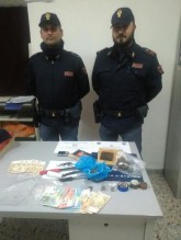 HASHISH E MARIJUANA. I fatti risalgono alla serata del 9 gennaio quando, in via Morgagni, gli agenti hanno notato due giovani sorpresi in atti che hanno insospettito le forze di polizia, tanto da dover procedere a perquisizione personale e domiciliare a carico dell’arrestato. Nel corso della perquisizione domiciliare è stata rinvenuta una tavoletta di hashish e alcune buste contenenti marijuana; inoltre sono state rinvenute numerose bustine usate per il confezionamento della sostanza stupefacente, un rotolo in cellophane, alcuni trita erba, due coltelli da cucina, un coltello a serramanico ed un bilancino di precisione.