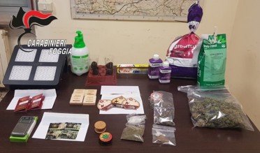 Lunedi 10 maggio i Carabinieri di San Severo hanno scoperto in un'abitazione privata una serra idroponica, ricavata in mansarda, con oltre 100 grammi di sostanza stupefacente tra marijuana e hashish, oltre a diversi strumenti per il taglio e il confezionamento dello stupefacente.