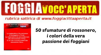 A FOGGIA. Da noi le cose vanno diversamente, altro che nero o grigio, dopo la promozione in serie B la vera passione dei foggiani è diventata il rosso-nero. E' nato così 50 sfumature di rossonero, un modo per scherzare sul rapporto che i foggiani hanno con la loro squadra del cuore.