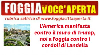 E inzò, mezzo mondo protesta contro il muro di Trump, noi a Foggia nel nostro piccolo protestiamo contro il cordolo di Landella. Appropò, vogliamo vedere se pure noi riusciamo a farcelo pagare dai messicani?