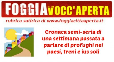 LO IUS SOLI. Ora ci mancava solo la protesta sullo ius soli. Vi dico come la penso: se sei nato a Foggia, vai allo Zaccheria, mangi gli scagliozzi e saluti i tuoi amici dicendo “pesc o cul” per me sei foggiano anche se hai la pelle di un altro colore.