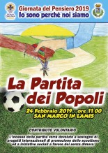 LA PARTITA. L'Agesci Zona Daunia domenica 24 febbraio 2019 promuove “La Partita dei Popoli”, in programma presso il campo sportivo “A. Parisi” di San Marco in Lamis. E lo fa nel corso della Settimana Internazionale dello Scoutismo in cui si ricorda il “World Thinking Day” – la Giornata del Pensiero – che ogni anno si celebra il 22 febbraio, giorno della nascita di Robert Peter Baden Powell, fondatore del movimento scout. Nella tradizione scout questa giornata diventa l’occasione ideale per vivere la fratellanza internazionale e per riflettere sul Movimento, agire per rafforzarlo e sostenerlo.