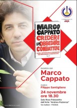 Capovolgendo un vecchio slogan fascista nato proprio dalla derisione di qualsiasi idea democratica, Marco Cappato pone al centro del suo libro, e della sua ultima battaglia, proprio la disobbedienza civile, intesa quale strumento di azione democratica. Il cuore della questione, stavolta, è un problema universale: il diritto da parte di un essere umano di decidere sia della propria vita che della propria morte. Se ne discute venerdì 24 novembre, alle ore 18.30, nella Sala Rosa del Palazzetto dell’Arte “Andrea Pazienza” di Foggia. L’incontro, organizzato dall’associazione radicale “Maria Teresa Di Lascia” in collaborazione con la libreria Ubik, vedrà protagonista l’attivista radicale, chiamato a conversare con il giornalista della Gazzetta del Mezzogiorno, Filippo Santigliano, intorno alle tematiche del suo ultimo libro: “Credere, disobbedire, combattere (Rizzoli, 2017).