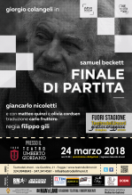 CAST E INFO. “Finale di Partita – si legge ancora nella presentazione dello spettacolo – è quel luogo, quella carne viva in cui, svelando una miseria, si riconosce una grandezza. È la freudiana catarsi; quella in cui, pattuita, dell'immensità del male e dell'amare, la loro inesorabile irrisorietà, si esce, dall'ultima seduta con la sensazione di potersela finalmente fare una passeggiata leggera, su questo mappamondo, su questa mappavita”. La regia dello spettacolo è di Filippo Gili. Oltre a Giorgio Colangeli e Giancarlo Nicoletti, in scena ci sono anche gli attori Matteo Quinzi e Olivia Cordsen. Prenotazione obbligatoria, previste riduzioni per gli over 65, per gli studenti di scuole medie, superiori e universitari e per chiunque frequenti un laboratorio teatrale, una scuola di teatro o un’accademia teatrale, su tutto il territorio nazionale (Progetto "White list"). Info e prenotazioni: 324.9948645 / 347.3414561 / info@teatrodeilimoni.it.
