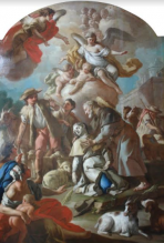 IL RESTAURO. Il dipinto (scuola del De Mura, XVIII secolo), raffigurante i due compatroni della città di Foggia, attendeva da tempo un robusto intervento che ne riportasse in vita lo splendore. La tela, infatti, di notevole importanza, presentava allentamenti e pieghe dovute ad una totale perdita di tensione, causate probabilmente da rotture, incastri scollati o schiodati o presumibilmente in seguito ad un imbarcamento, originato da sollecitazioni termo-igrometriche anomale del telaio.