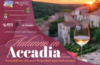 Torna la "Festa dell'uva", uno degli appuntamenti più attesi dei Monti Dauni. Nel suggestivo scenario del Rione Fossi di Accadia, infatti, il 25 e 26 ottobre si terrà la ventesima edizione di Autunno in Accadia e la quarta edizione di Cantine Aperte, iniziative promosse dal Comune di Accadia insieme alla Pro Loco, con la collaborazione delle associazioni locali.