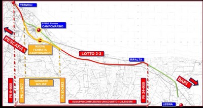 IL PRIMO LOTTO. Per quanto riguarda il primo lotto, da Ripalta a Lesina (circa 7 Km), affidato a marzo 2021, per un importo di circa 59 milioni di euro ed un investimento complessivo di 106 milioni, sono in fase di ultimazione le attività di progettazione esecutiva a cura dell’Appaltatore. Seguirà a breve la fase di apertura dei cantieri, con previsione di ultimazione lavori nel 2025.