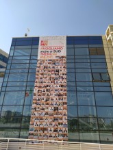 Sul grande “lenzuolo” artificiale, i volti di tutti i testimonial dell’iniziativa, duecento rappresentanti delle Istituzioni e della politica, della cultura e delle Università, del mondo imprenditoriale, della stampa e dello spettacolo.