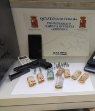 Numerose carte di identità e tessere sanitarie di diverse persone di Cerignola, con carte prepagate, documentazione bancaria relativa alla loro attivazione, due telefoni cellulari, un tablet, tre PC, un POS 3G, settemila euro suddivise in banconote di diverso taglio, una pistola a salve e 33 cartucce a salve.
