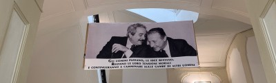 Nell’atrio del Dipartimento di Giurisprudenza dell’Università di Foggia, in largo Papa Giovanni Paolo II, è stata affissa una gigantografia (permanente) della storica immagine che ritrae i giudici Giovanni Falcone e Paolo Borsellino. Un gesto piccolo, ma molto significativo.