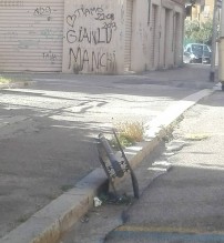Via Bonghi: marciapiedi rovinati, pali spenti e segnali stradali a terra - I LETTORI SEGNALANO