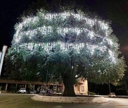 LA QUERCIA. Particolarmente suggestivi gli addobbi luminosi che rendono ancora più maestosa la quercia che si trova accanto al Convento dei Cappuccini a Vico del Gargano. Classificato come “esemplare d’eccezionale valore storico o monumentale” dal Corpo forestale dello Stato, questo magnifico leccio era già stato segnalato alla fine del Novecento da Adriano Fiori, uno dei massimi esponenti della botanica italiana ed europea. Il leccio dei Cappuccini è un albero plurisecolare, una targa riporta che venne piantato da un frate cappuccino, Fra Nicola da Vico del Gargano, e fatto poi benedire dal padre superiore. Questa storia stima l’età dell’albero in circa 400 anni. Guardando il leccio da lontano si nota subito la sua maestosità, con una chioma verde scuro che può raggiungere un’ampiezza di 50 m. Più da vicino si nota il suo possente tronco di 5 metri di circonferenza, una enorme carie longitudinale e la mancanza di una branca, spezzata da una tempesta nel 1934.