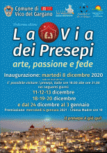 “La via dei Presepi” si farà. Sarà inaugurato martedì 8 dicembre, dalle ore 18 alle 21, il percorso lungo il quale sarà possibile ammirare non solo l’arte presepiale, ma anche 10 luoghi della fede a Vico del Gargano e uno a San Menaio.