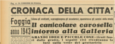 IL PROGETTO. Tutto ciò, cari amici lettori, mentre, a quasi sette anni dalla fine della guerra, un gran numero di foggiani ed in alcune zone di Foggia, si viveva ancora nella miseria più assoluta; in alloggi di fortuna: grotte e sotterranei, insieme agli animali; tra malattie infettive che la facevano da padrone; promiscuità e mancanza di beni essenziali e dunque vi era bisogno di ben altro che di un faraonico e irrealizzabile progetto come quello della galleria che, fortunatamente è rimasto nei sogni e desideri di qualcuno.