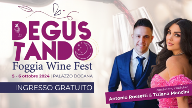 Un fine settimana all'insegna del buon vino, della buona cucina e della convivialità. E' tutto pronto per "Degustando" Foggia Wine Fest, organizzato dalla Pro Loco di Foggia, in programma nella suggestiva cornice di Palazzo Dogana. L'evento si terrà sabato 5 ottobre (dalle ore 18:30 a mezzanotte) e domenica 6 ottobre (dalle 11:00 alle 13:00 e dalle 18:00 alle 22:00). Il "Foggia Wine Fest" rappresenta un'opportunità imperdibile per gli amanti del vino e della gastronomia.