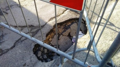 LA VORAGINE. «Il 29 dicembre – sottolinea Buonarota - ho appreso, e poi constatato di persona, che su via Cesare Cantù, a Foggia, si è aperta una voragine nel bel mezzo della strada, nel tratto compreso tra Via A. Ricci e Viale Mazzini. Le foto che ho fatto testimoniano quanto detto. A Foggia tutti noi sappiamo bene che sono in corso i lavori per ristrutturare la rete fognaria e che il Comune sta provvedendo a controllare, mediante i tecnici e i responsabili dell’ufficio preposto, affinché tutto proceda secondo i capitolati in essere e le norme vigenti. Ciononostante non posso esimermi nel riscontrare che in alcune vie dove i lavori son stati svolti da alcuni mesi le coperture cosiddette “di assestamento” sono rimaste tali».