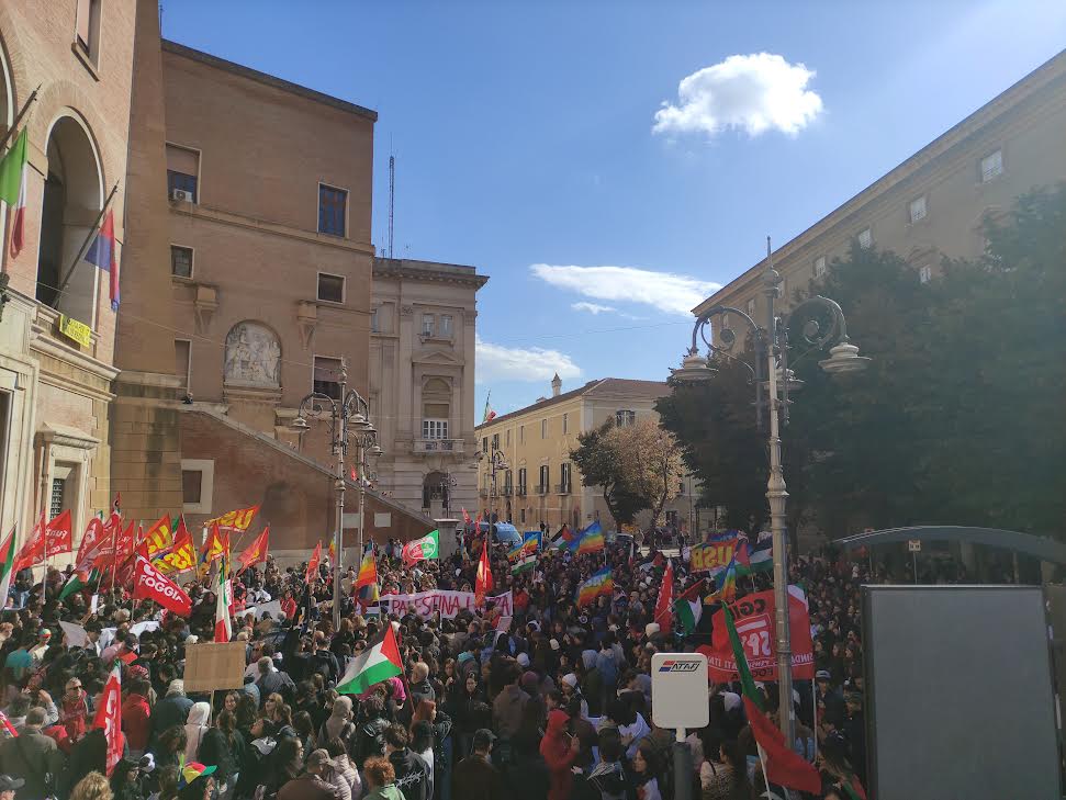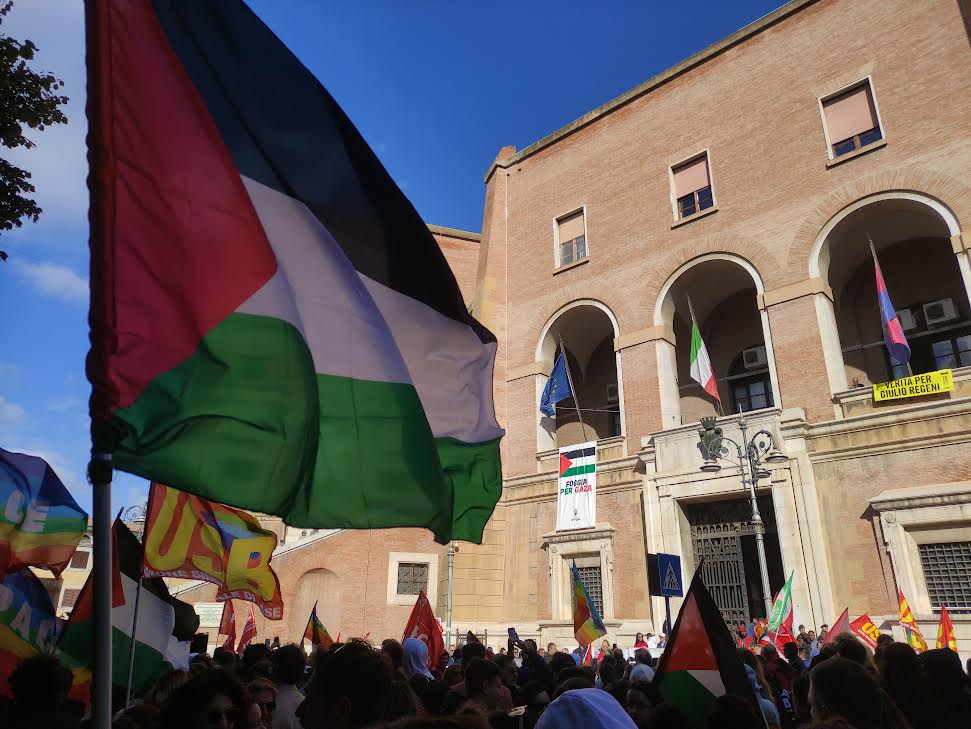 LA MANIFESTAZIONE. È quanto emerso durante la manifestazione del 3 ottobre che ha coinvolto anche centinaia di partecipanti foggiani: studenti, lavoratori, sindacati e persone comuni scese in piazza per protestare contro quanto sta accadendo a Gaza. Oltre che contro le misure – giudicate inadeguate e complici di Israele – del Governo italiano nei confronti degli italiani fermati e arrestati nelle scorse ore durante l’abbordaggio della Flotilla da parte delle navi di guerra dell’esercito israeliano.