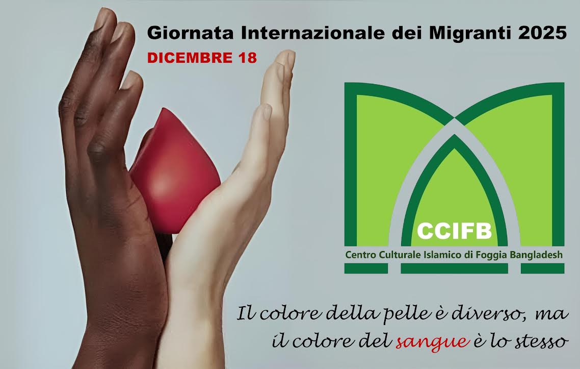 In occasione della Giornata Internazionale dei Migranti, che si celebra il 18 dicembre, il Centro Culturale Islamico di Foggia Bangladesh (CCIFB) organizza una donazione di sangue tramite autoemoteca nel cuore di Foggia, in collaborazione con il Servizio di Immunoematologia e Medicina Trasfusionale (SIMT) del Policlinico Riuniti di Foggia.
