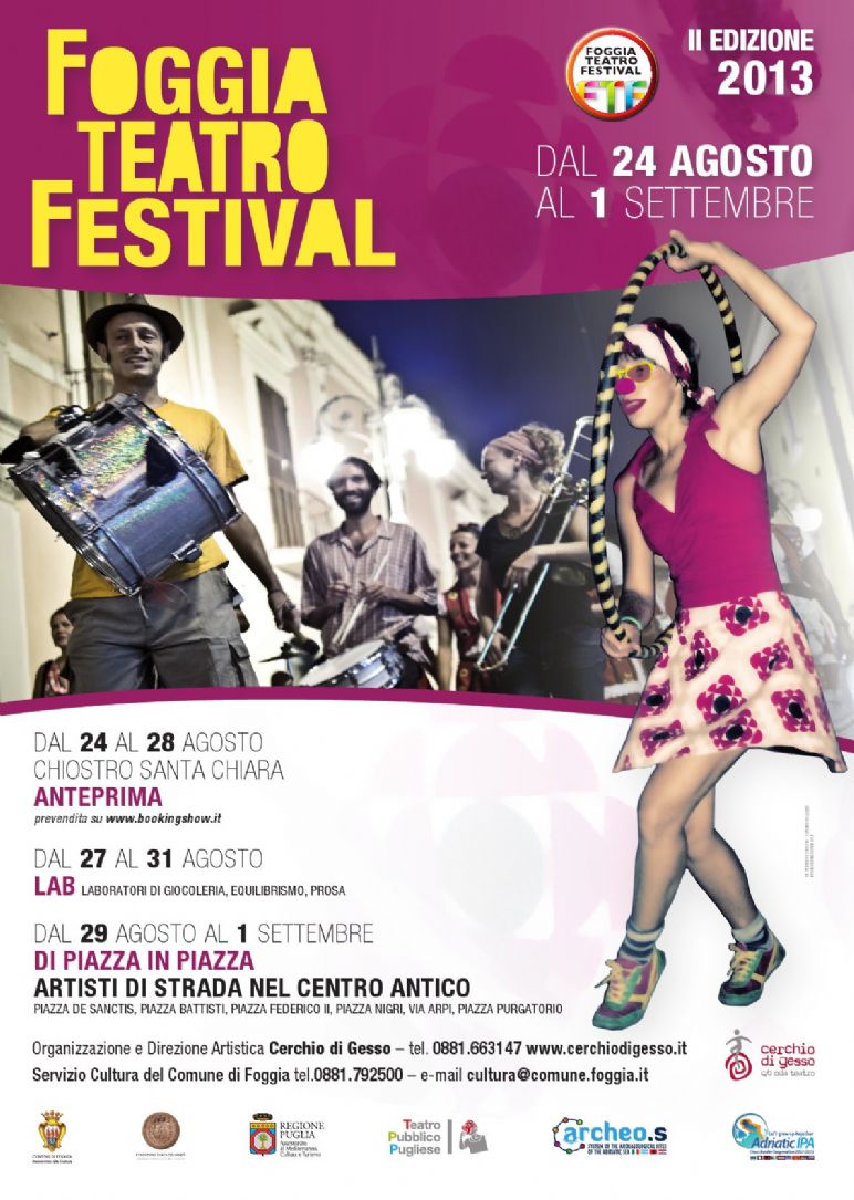 Il programma completo della seconda edizione del Foggia Teatro Festival, la kermesse culturale che porterà nel centro storico del capoluogo dauno più di 70 artisti per oltre 100 ore di spettacoli dal vivo (scarica il pdf)