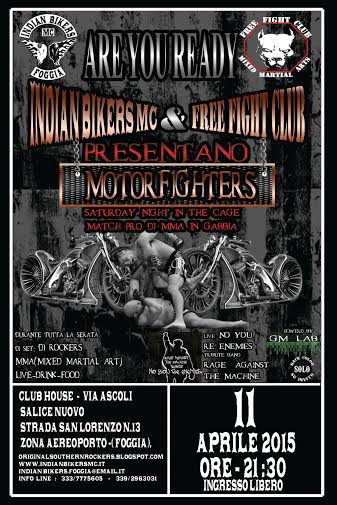 Una vera e propria “chicca” non solo per gli amanti delle due ruote e del rock duro, ma anche per gli appassionati di quegli eventi in grado di fondere happening apparentemente lontani tra loro per genere e tipologia. E l'edizione numero uno del Motorfighters, per la prima volta al sud Italia, rientra proprio tra questo tipo di manifestazioni: rock dal vivo, tatoo, piercing, arti marziali e motociclette, tutto in un'unica notte, in programma il prossimo sabato 11 aprile dalla sede degli Indian Bikers di Foggia (Strada San Lorenzo n. 13, Salice Nuovo), con inizio alle ore 20.30.