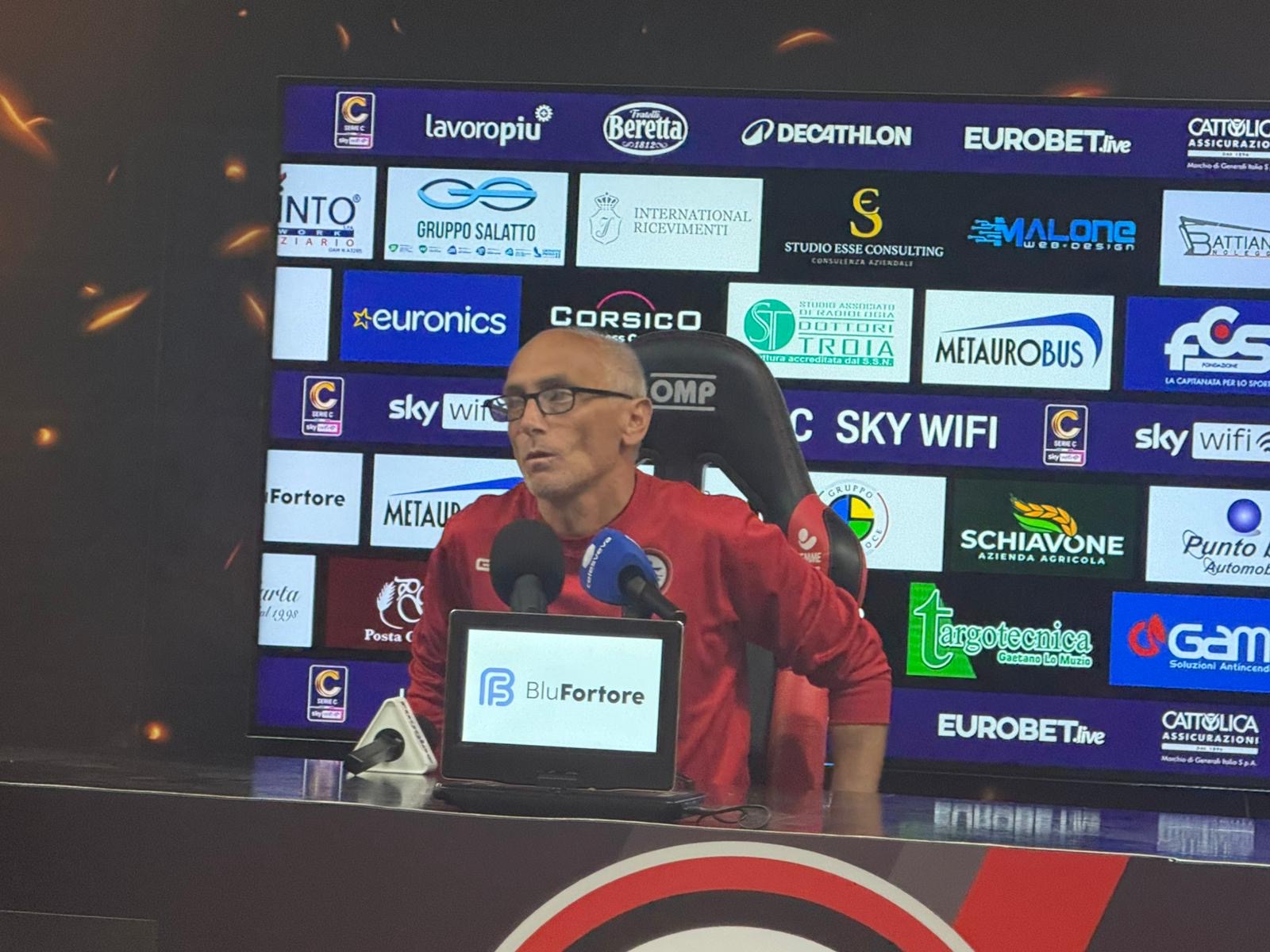 Mister Barilari commenta l’ultima gara del Foggia in C della stagione: “La mazzata delle dieci sconfitte consecutive ha tagliato le gambe – afferma in sala stampa – dal punto di vista psicologico ha tolto molto. Era obiettivamente difficile ma non pensavo di prendere gol dopo cinque minuti. Il pezzo centrale della gara mi ha fatto percepire che potevamo farcela, ma quel terzo gol non ha senso. E’ una brutta giornata, ma penso che la proprietà possa fare un ottimo lavoro. Avere due presidenti tifosi non è da tutti. Mi spiace aver deluso i tifosi, che mi hanno mostrato sempre affetto. Io in D sulla panchina rossonera? Non posso dirlo e non posso rispondere, mancherei di rispetto alla proprietà”. Poi un giudizio sui gol presi oggi: “E’ tutta la stagione che c’è la coperta corta, troppi contrasti persi – spiega il mister – è una questione di caratteristiche. La squadra ha dato tutto quello che aveva ma affrontavamo un avversario superiore. L’allenatore conta in una percentuale piccola, a meno che non fa danni. La parte fisica, tecnica e mentale hanno contato tutte e tre nella retrocessione. Quando sono arrivati alcuni giocatori, io ero contento. Ma è grave che in una partita così il migliore in campo sia Menegazzo che è un 2005”.